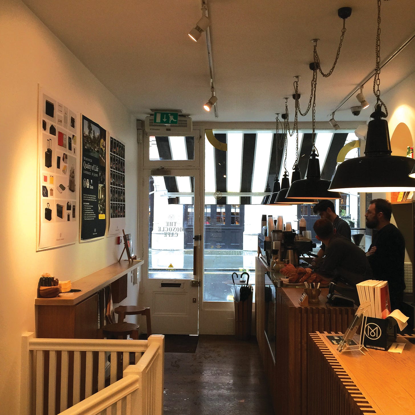 런던에 위치한 더 모노클 카페는 유럽풍이 아니라 일본풍에 가까운 분위기입니다. 일본 디자이너 요시츠구 타카기가 이끌고 있는 모노클 디자인팀이 더 모노클 카페 도쿄 지점의 분위기를 반영하면서 모노클이 추구하는 바를 구현했기 때문입니다. 정갈한 느낌의 매장 곳곳에서 모노클의 콘텐츠, 제품, 행사 등에 대한 홍보 포스터를 볼 수 있는데 이를 통해 고객들은 모노클이 하고 있는 다양한 사업들을 접할 수 있습니다. 카페가 모노클의 소식을 전하는 소통 창구 역할을 하는 것입니다.