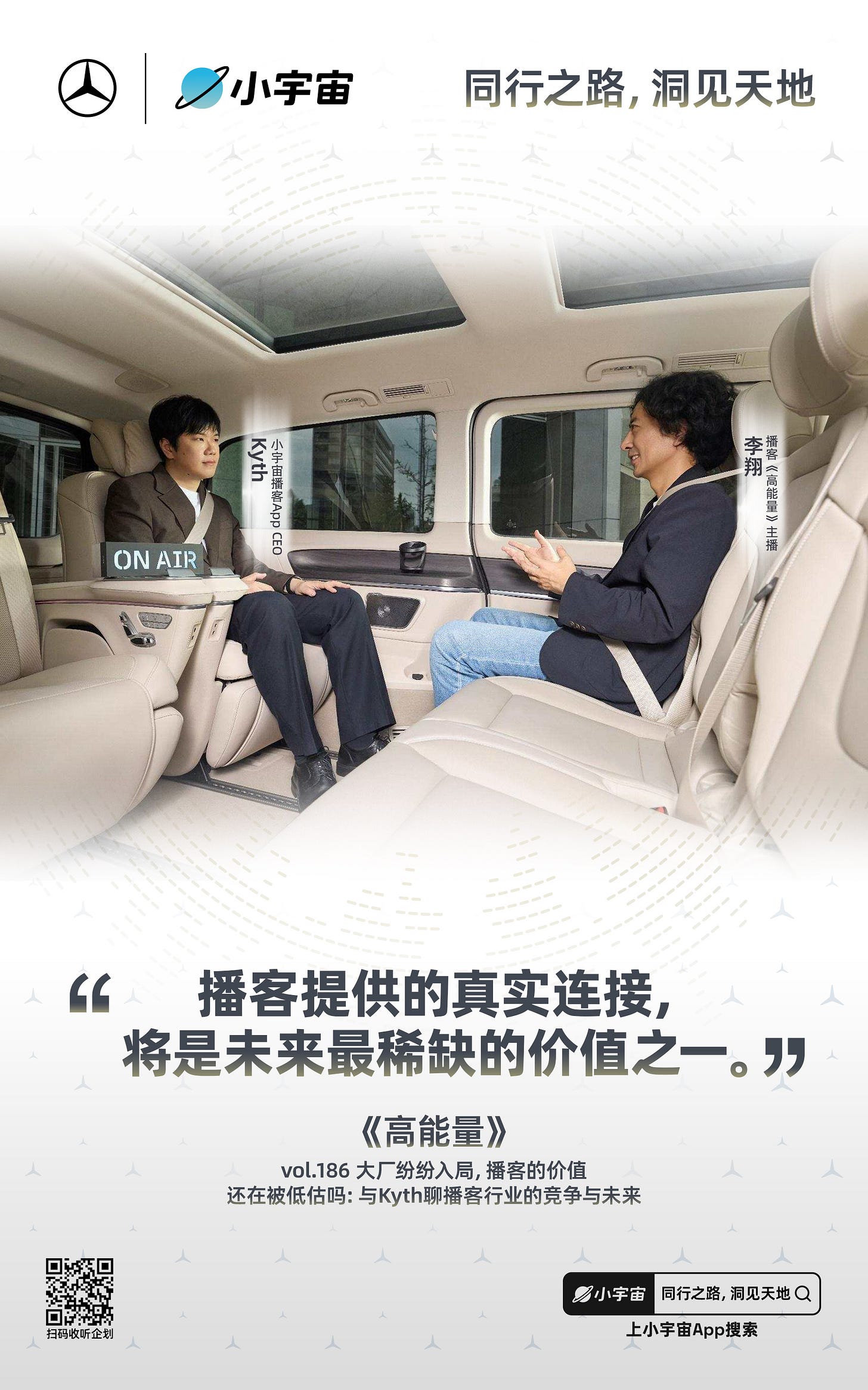 이 팟캐스트 프로그램의 첫 번째 에피소드에서는 샤오위저우의 CEO인 키스(Kyth)와 팟캐스트 채널 ‘하이에너지’의 진행자 리샹이 출연했어요. 두 사람은 AI 시대의 진정한 연결을 주제로 이야기를 나눴죠. 메르세데스-벤츠의 달리는 스튜디오는 실시간으로 바깥 풍경이 바뀌었고, 이는 출연자들의 긴장감을 풀어줬어요. 두 사람은 편안한 분위기 속에서 자연스러운 대화를 나누며 사람들에게 새로운 청취 경험을 선사했죠.