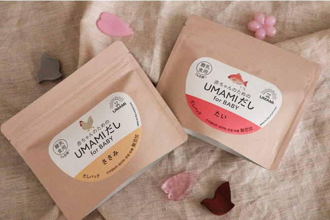 우마미 포 베이비는 첨가물과 보존료를 일절 사용하지 않고 100% 자연식으로 이뤄져 있어요. 성장 개월 별로 아기가 먹을 수 있는 음식을 나눠 시리즈로 만들었죠. 가격 또한 한 팩에 594엔(약 5,900원) 정도로 부담없어요. 육수팩에서 육수를 쓰고 난 나머지 내용물은 이유식 재료로도 쓸 수 있어, 식재료를 일일이 구매해 자르고 으깨고 끓이는 수고를 줄여줘요.