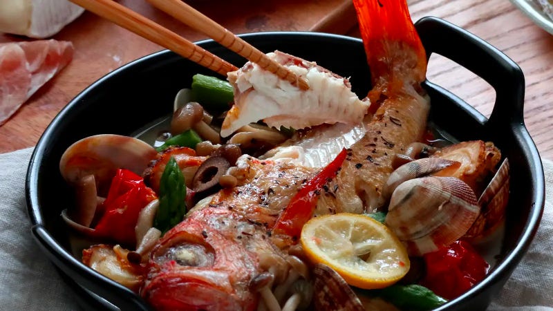 동양식과 서양식의 조화를 꾀한 상품도 있는데요. 아쿠아팟차(Aquapazza)를 일본식으로 재해석한 거예요. 아쿠아팟차는 생선찜에 화이트 와인과 올리브유 등으로 국물을 만들어낸 이탈리아식 해산물 요리예요. 이탈리아어로 ‘미친 국물’이란 뜻을 갖고 있죠. 일반적인 아쿠아팟차가 이렇게 와인이나 기름, 물을 베이스로 한다면 온 더 우마미는 육수로 ‘일본식 미친 국물’을 만들었어요. 잘 손질된 니가타현의 고급 생선 노도구리에 채소, 새우, 바지락을 조합한 국물, 여기에 일본 술을 살짝 떨어뜨린 육수팩을 동봉해 생선에 부드러운 일본식 국물맛이 스며들도록 했거든요. 이 육수는 파스타나 수프에도 넣어 먹을 수 있어 활용도가 높아요.