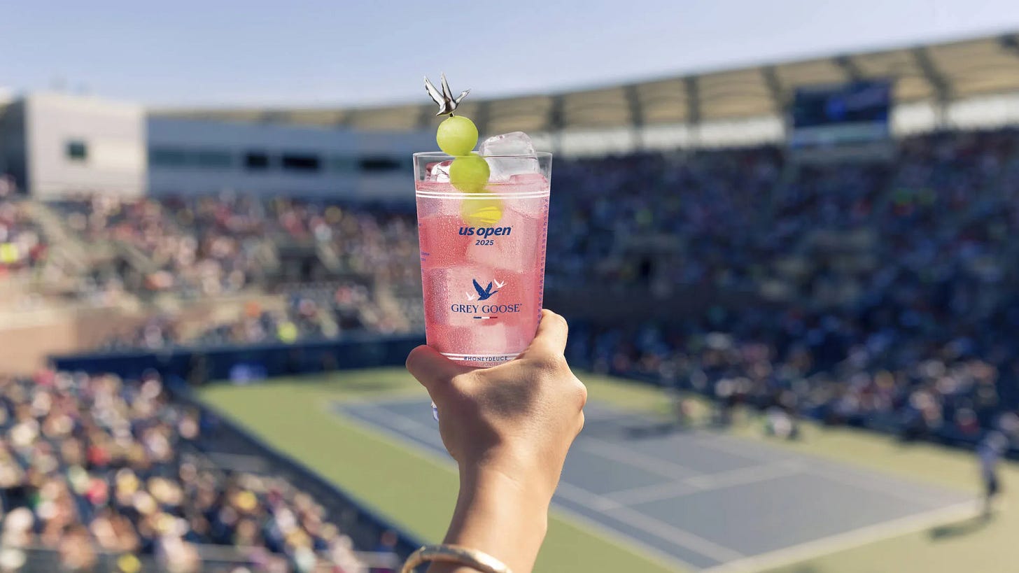 전국민적 관심을 받는 스포츠 행사에 브랜드 스폰서십이 빠질 수 없어요. ‘티파니 앤 코’, ‘IHG 호텔 앤 리조트’ 등 스폰서로 참여한 많은 브랜드들이 단순한 브랜드 노출이 아니라 팝업 스토어나 이벤트를 열어 몰입감 넘치는 고객 경험을 구현 중이에요. 그런데 그중에서도 최대 수혜자가 있어요. 바로 US 오픈 공식 보드카 브랜드인 ‘그레이 구스(Grey Goose)’예요.