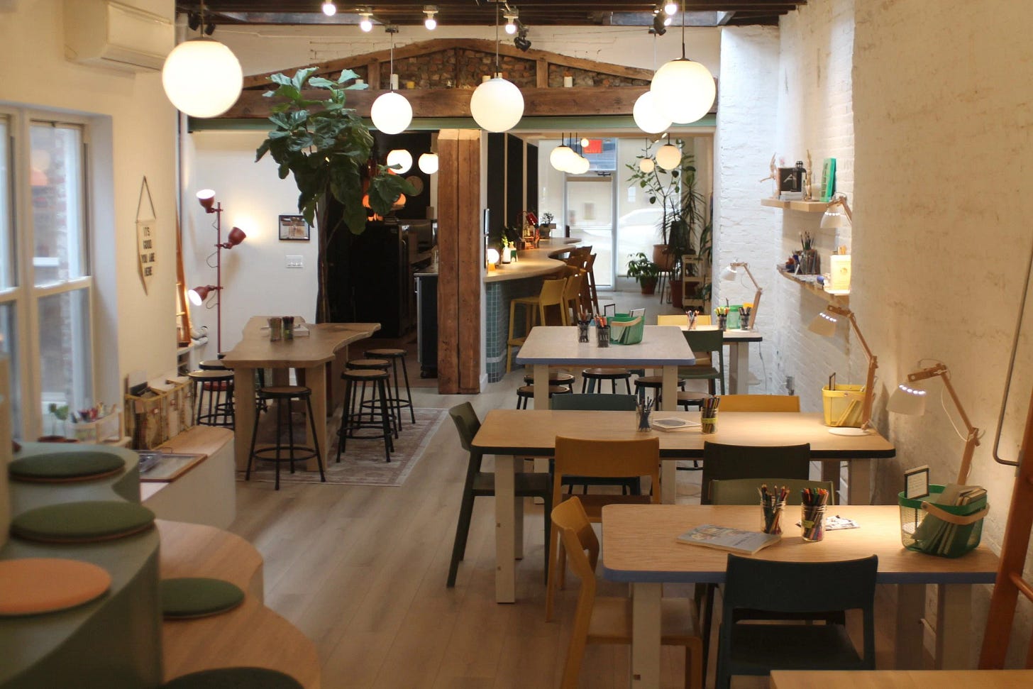 이런 트렌드는 부동산 임대인들의 관점에서도 환영할 만한 일이었어요. 왜냐하면 아트 워크숍의 특성상 비용과 시간 효율적으로 공간을 임대할 수 있거든요. 맨해튼과 브루클린에 각각 매장을 운영 중인 아트 워크숍 ‘해피 미디엄(Happy Medium)’의 사례를 볼게요. 해피 미디엄의 창업자들은 2024년 2월 초에 임대 계약을 맺고, 바로 다음 달인 3월 9일에 문을 열었어요. 겨우 한 달 남짓한 시간 동안 공간을 완전히 탈바꿈시킨 거예요.