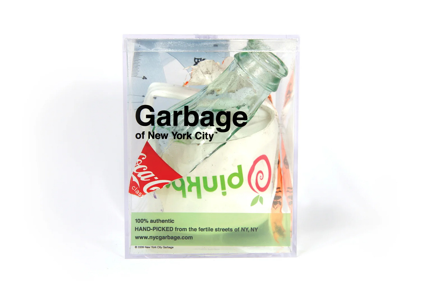 그래서 그는 실제로 길거리의 쓰레기를 주워 투명한 큐브에 담았어요. 큐브에는 서명, 번호, 날짜를 적어 ‘100% 정품’, ‘뉴욕의 비옥한 길거리에서 엄선한’ 쓰레기라며 판매했어요. 그럴싸한 패키지 덕분에 뉴욕 쓰레기가 행위 예술의 일부이자, 뉴욕이라는 도시를 상징하는 듯했죠. 2025년 5월에 열렸던 ‘NYCx디자인 페스티벌’에서는 이 뉴욕 쓰레기 큐브를 뉴욕 여행을 기념하는 기념품으로 추천하기도 했고요.