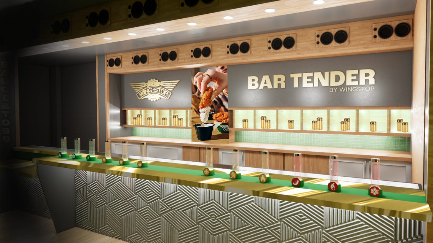 지난 4월, 윙스탑이 그 연장선에서 재밌는 컨셉의 팝업을 열었어요. 신제품 ‘뉴 크리스피 텐더(New Crispy Tenders)’를 선보이기 위한 자리였는데요. 이름하여 ‘바 텐더 바이 윙스탑(Bar Tender by Wingstop)’. 뉴욕 브루클린의 인기 칵테일 바, ‘졸린 사운드룸(Jolene Soundroom)’에서 칵테일 믹솔로지 대신 ‘플레이버 믹솔로지’를 구현한 거예요.