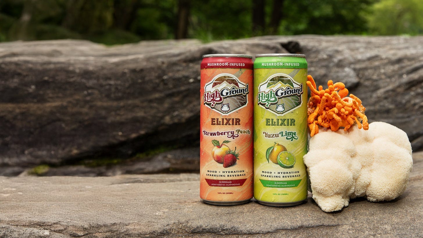 하이 그라운드 엘릭서는 어댑토제닉 ‘버섯’을 주입한 탄산 음료 브랜드예요. 하이 그라운드 엘릭서의 탄산 음료에는 노루궁뎅이 버섯, 영지 버섯, 동충하초, 차가 버섯, 구름 버섯 등 5가지 유기농 어댑토제닉 버섯이 들어가 스트레스 완화, 활력 증진, 면역력 강화 등의 효과를 내요. 여기에 딸기, 유자 등 과일 농축액을 섞어 익숙한 맛을 냈죠. 탄산 음료로도 즐길 수 있고, 생과일, 민트 등을 섞어 무알코올 칵테일로도 즐길 수 있어요.