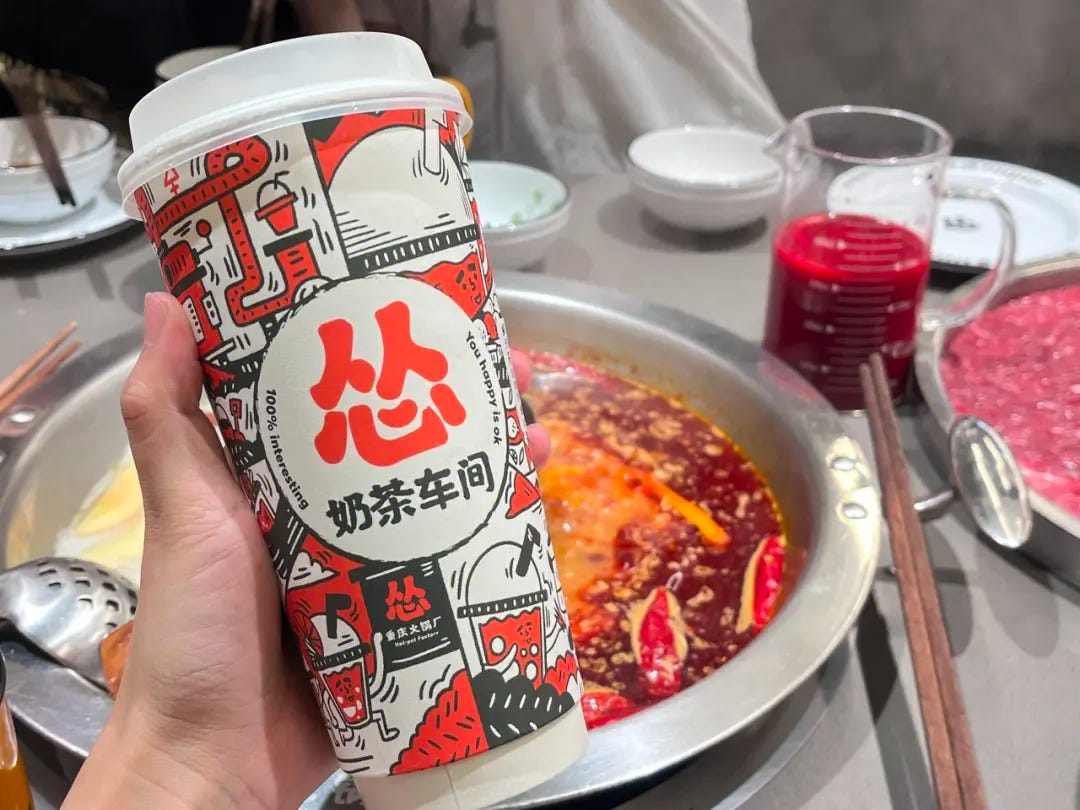 매콤한 훠궈를 먹은 후 많은 중국 사람은 달달한 밀크티를 찾아요. 쏭충칭훠궈창에선 식사를 마친 고객들을 위해 이 밀크티도 무료 서비스로 제공하는데요. 최근엔 밀크티만 따로 팔아달라는 고객들의 요청으로, 일부 지점에선 배달앱을 통해 밀크티 판매를 시작하기도 했어요.