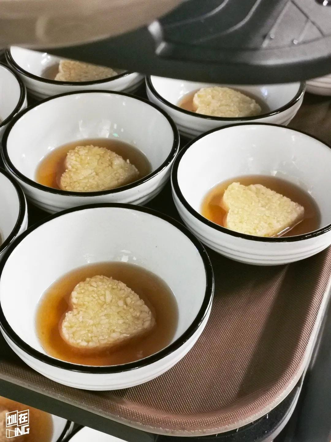 대중의 입맛에 맞는 땅콩 장 대신, 다진 마늘을 넣은 참기름 장만 제공하는 것도 ‘소스 맛으로 훠궈 즐기는 것을 지양하고, 재료의 참맛을 최대한 끌어올려 즐길 수 있는 방식’이에요. 이때 다진 마늘로 ‘하트’ 모양을 만들어 참기름을 부은 상태로 제공하는데, 땅콩장이 없어 당황할 수 있는 고객들을 웃음 짓게 만들죠.