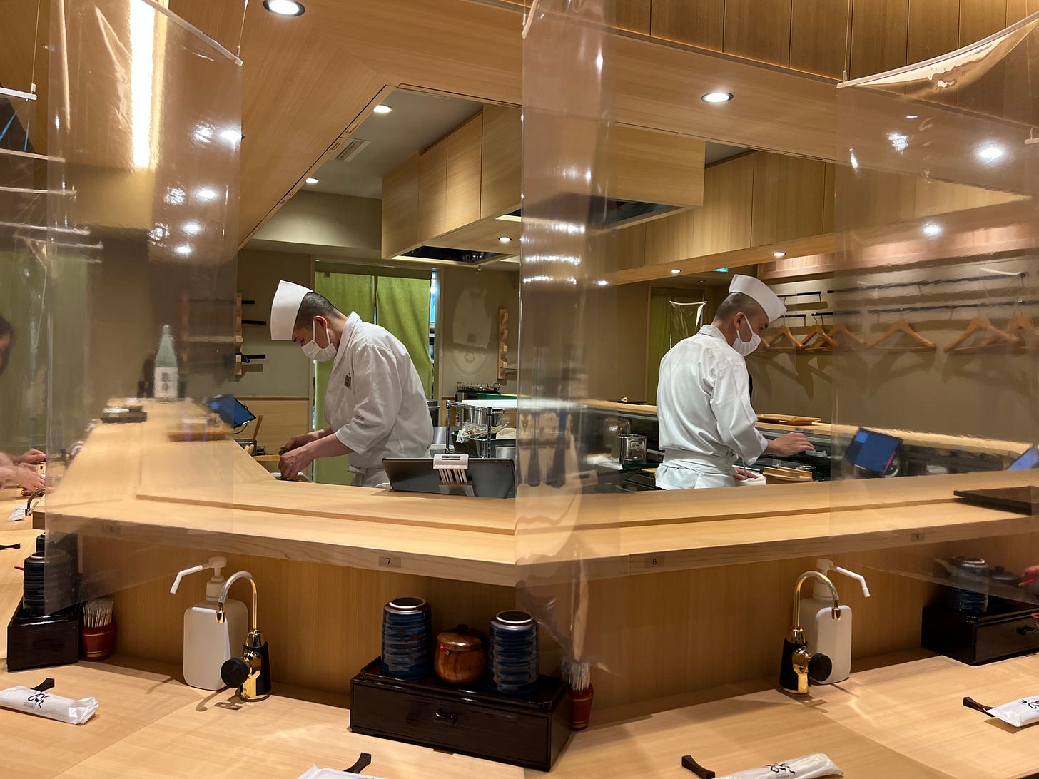 보통의 고급 스시집에는 카운터 석이 있어요. 카운터 너머를 통해 보는 장인의 손놀림은 일종의 퍼포먼스죠. 손님과 일대일로 눈을 마주치며 대화에 참여하고 손님이 먹는 속도에 맞춰 접대하는 매너 또한 스시 장인이 갖춰야할 기술 중 하나고요. 스시 장인이 스시를 만들고 고객을 응대하는 역할을 한다면, ‘테고’라고 불리는 셰프들은 스시 장인을 지원하면서 생선을 손질하고, 밥을 짓는 등 가게 뒷편의 주방에서 일을 하죠.