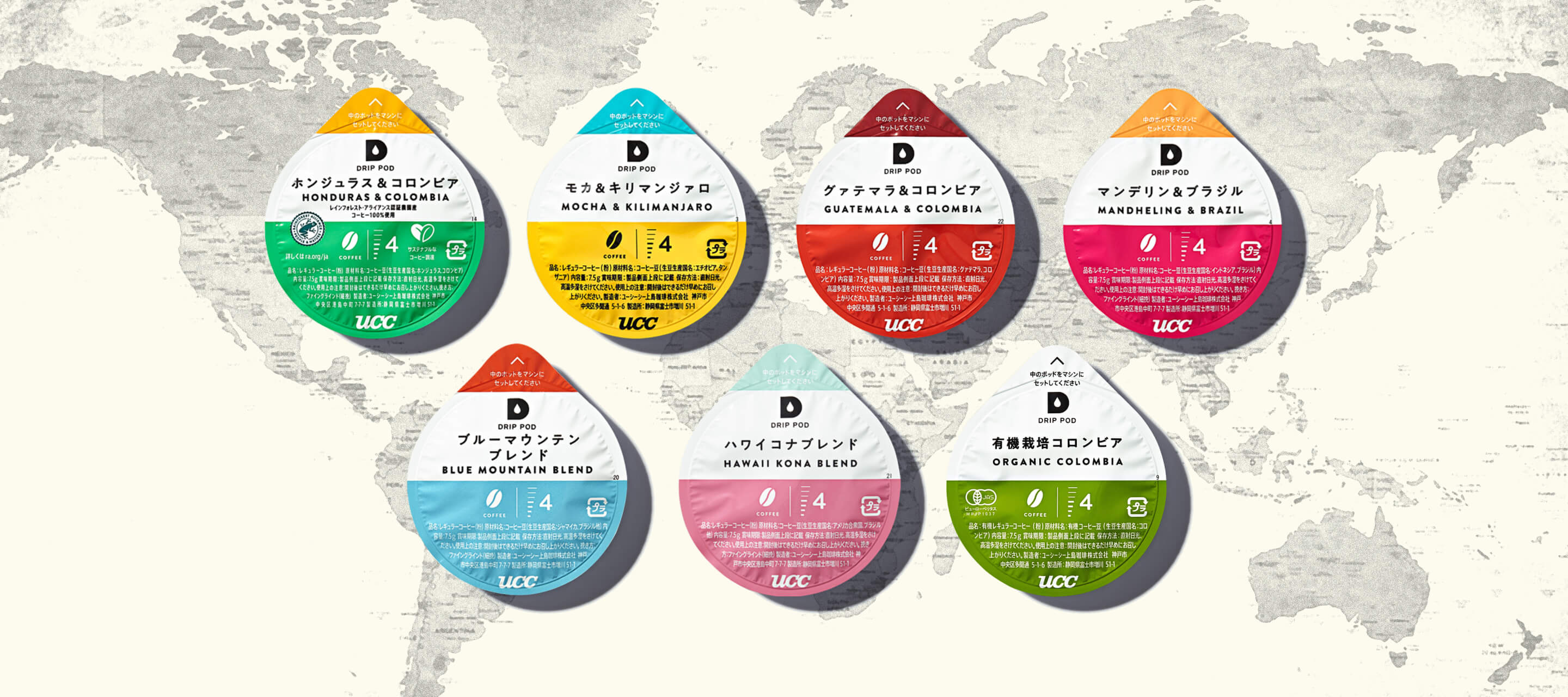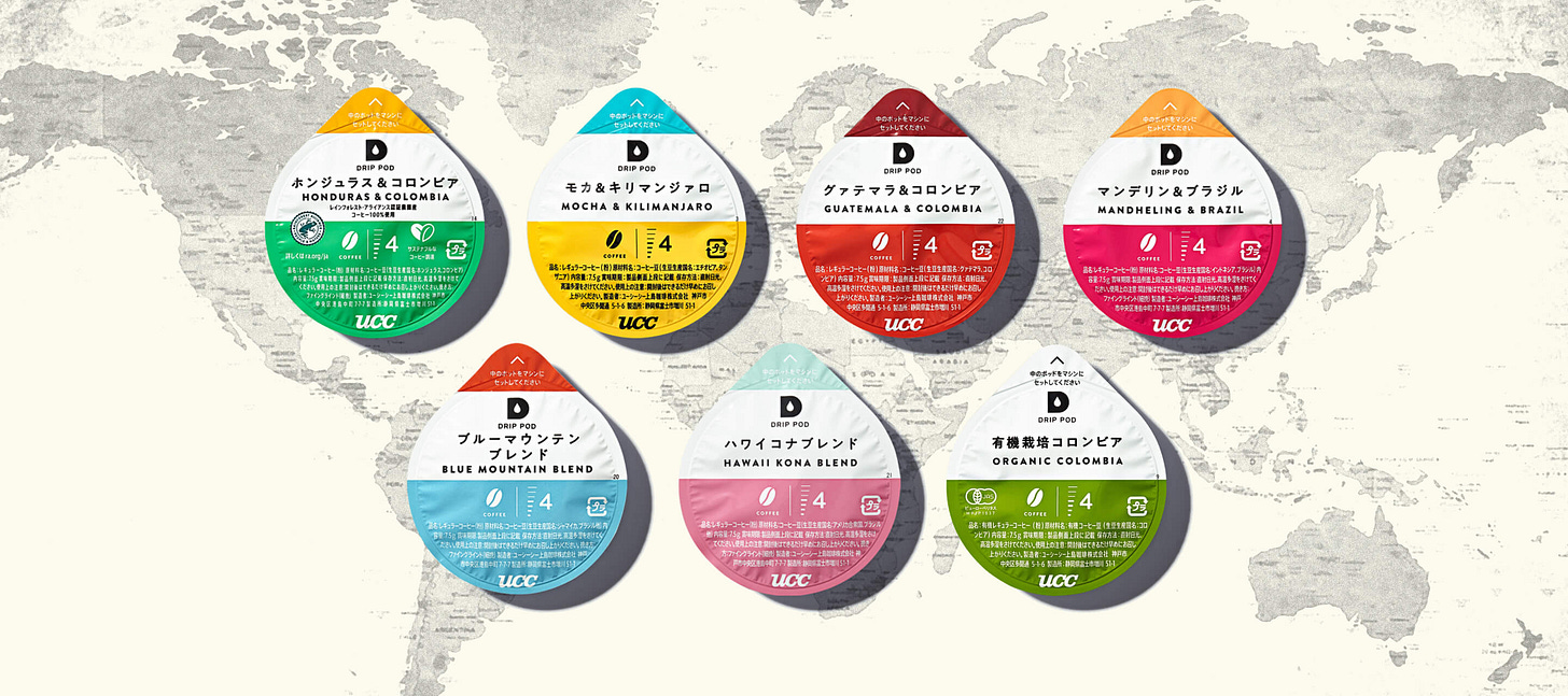 그렇다면 카페를 이렇게 운영하는 이유가 뭘까요? 이 카페는 일본의 커피 회사 UCC에서 만드는 캡슐 커피, ‘드립 팟(DRIP POD)’과 캡슐 커피 머신 ‘드립 팟 유비(DRIP POD YOUBI)’를 홍보하기 위한 팝업 카페거든요. 바리스타 없이 캡슐커피만으로 수준급의 커피를 즐길 수 있다는 걸 체험할 수 있도록 돕는 공간이에요.