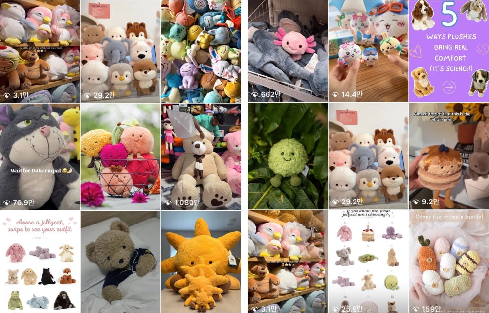 부드러운 촉감과 정감 가는 외모의 봉제인형은 인형 그 이상이에요. 친구나 가족 같은 존재가 되기도 하죠. 특히 최근들어 ‘젤리캣’, ‘스퀴시멜로’ 등 봉제인형 브랜드들이 인기를 얻으면서, 전 세계적으로 봉제인형과 애착을 형성한 사람들이 많이 생겨났어요. 인스타그램에서 봉제인형을 뜻하는 #plushies 해시태그를 검색하면 게시물만 302만 건이 나올 정도예요.
