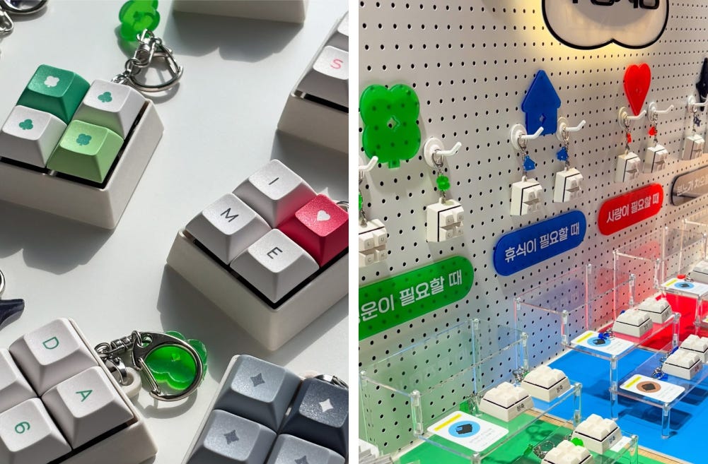 요즘 서울에서 힙한 소비는 손끝에서 시작되고 있어요. 수십만 원짜리 기계식 키보드를 구매하거나, 키보드 위 키캡을 하나하나 커스터마이징해 꾸미는 ‘키꾸’가 하나의 유행처럼 자리잡고 있거든요. 키보드 키캡으로 만든 키링이나 액세서리를 파는 팝업스토어도 잇따라 열리고 있고요. ‘어떤 키감을 선택하느냐’가 ‘어떤 음악을 듣느냐’만큼의 정체성을 드러내는 시대가 된 거예요. 그렇다면 지금 왜, 이토록 많은 사람들이 키보드에 빠져 있는 걸까요?