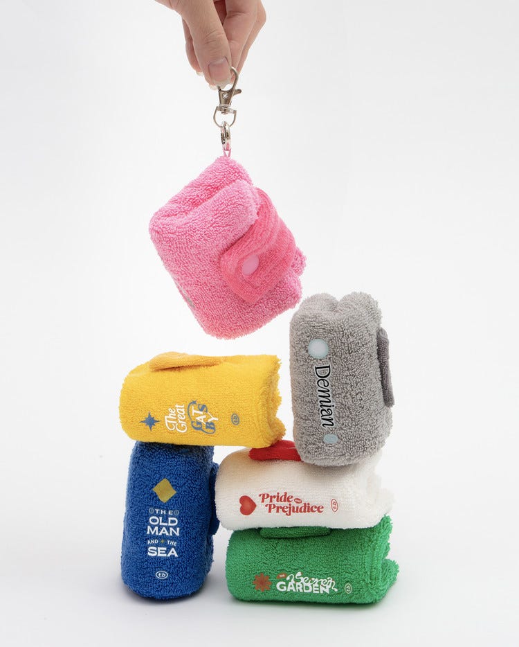 심지어 최근엔 타월 북의 미니 버전인 ‘타월 북 미니 핸드키링’까지 열풍인데요. 이 제품은 실제 수건 원단으로 만든 작은 핸드 타월로, 접으면 책처럼 보이지만 펼치면 손을 감쌀 수 있는 사이즈예요. 가방에 걸어두고 외출할 때 간편하게 들고 다니다가, 손을 씻은 후나 땀이 났을 때 바로 사용할 수 있는 실용적인 아이템이죠. 독창적인 디자인뿐 아니라 실용성까지 동시에 잡은 키링형 타월로 인기를 끌고 있어요.