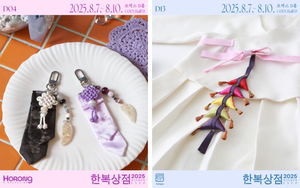 이런 장면들을 보다 보면, 우리조차도 정작 한복에 대해 얼마나 알고 있는지 문득 의문이 들어요. 한복의 본래 기능이나 착용법, 관련 역사 등이 낯설게 느껴질 때도 많으니까요. 이때 주목할 만한 행사가 있어요. 바로 국내 유일의 한복 박람회, ‘2025 한복상점’이에요. 8월 7일부터 10일까지 코엑스 D홀에서 열린 이번 행사는 무려 150개 브랜드가 참여하는 역대 최대 규모로, 한복을 직접 보고, 입고, 체험할 수 있는 서울 대표 문화 이벤트였어요.