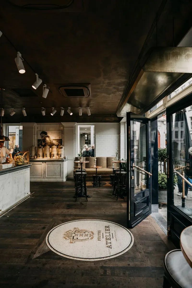 프리츠 아틀리에는 네덜란드에서 온 감자튀김 브랜드예요. 2016년, 네덜란드의 셰프 세르지오 헤르만(Sergio Herman)과 사업가 로랑 홈프(Laurent Hompes)가 함께 설립한 감자튀김 전문 캐주얼 다이닝 매장이죠. 올해로 10년 차에 접어들었어요. 네덜란드 암스테르담에서 시작해 벨기에 안트베르펜, 브뤼셀, 겐트 등으로 확장을 하다 이번에 처음으로 영국에 진출한 거예요.