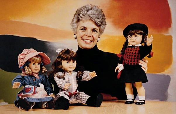 앞서 설명했듯이 아메리칸 걸은 인형을 바라보는 관점이 남달라요. 그렇다면 이런 인형은 누가, 왜 만든 걸까요? 1986년, 아메리칸 걸의 창업자 플레샌트 롤랜드(Pleasant Rowland)는 조카들을 위한 크리스마스 선물을 고민하고 있었어요. 당시 헝겊으로 만든 양배추 인형이 인기였지만 조잡한 외양이 마음에 걸렸죠. 바비 인형은 더 아니었어요. 80년대의 여성들은 기존의 사회적 관습에 맞서 스스로의 역할을 재정의하고 있었는데, 여자 아이들은 십대 퀸카 같은 인형을 갖고 논다는 게 안타까웠죠. 그녀는 여자 아이들에게 줄 크리스마스 선물이 양배추 인형 아니면 바비 인형밖에 없다는 사실이 싫었어요. 그녀는 여자 아이들이 그 시절을 더 다채롭게 즐길 수 있기를, 그러면서도 현명한 사람으로 성장할 수 있기를 바랐어요. 그리고 그런 바람을 가진 미국인 여성이 혼자만이 아니라는 걸 알고 있었죠.
