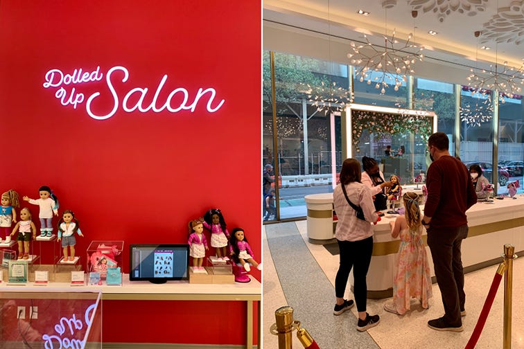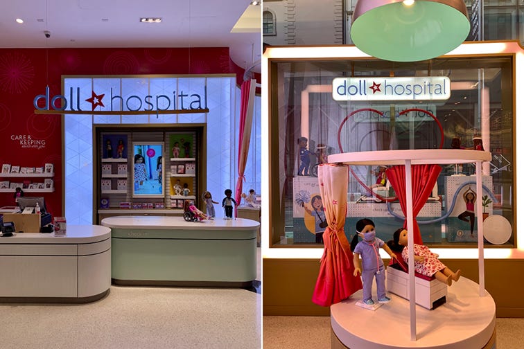 이 매장은 특징적인 점이 있어요. 보통 장난감 매장을 찾는 아이들은 빈손으로 들어갔다 새 장난감을 들고 나오죠. 하지만 아메리칸 걸 플레이스의 풍경은 조금 달라요. 새 인형을 구경하거나 구매하려고 오는 아이들도 많지만, 들어갈 때부터 이미 갖고 있던 아메리칸 돌 인형을 들고 들어가는 어린이들을 심심치 않게 볼 수 있죠. 아니, 인형을 파는 가게에 오는데, 굳이 과거에 샀던 인형을 데려오는 이유는 뭘까요?