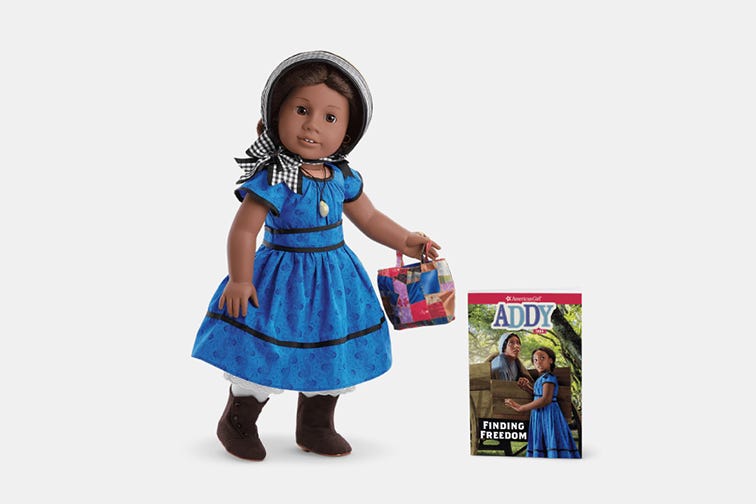 아메리칸 걸의 시그니처 컬렉션 중 하나가 바로 이 원조 컨셉을 이어받은 ‘역사 속 캐릭터‘ 시리즈예요. 1764년의 미국 원주민 소녀 ‘카야(Kaya)’부터 비디오게임을 좋아하는 1986년의 ‘코트니(Courtney)’까지. 열 한 명의 캐릭터가 존재하는데요. 다양한 배경의 소녀들이 추가되면서 아이들은 더 풍부하고 폭넓은 역사를 접할 수 있게 되었어요. 이중에서도 가장 파격적이면서도 교훈적으로 보이는 이야기는 단연 1864년의 아프리카계 미국인 소녀 ‘애디(Addy)’의 이야기입니다.