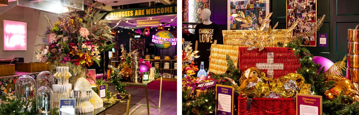 ‘사랑을 선택하세요’는 2015년 난민 위기 속에서 시작된 인도주의 단체예요. 이후 매년 겨울, 런던 중심가에서 팝업 스토어를 열어왔어요. 어김없이 2025년에도 11월 18일부터 12월 24일까지 리젠트 스트리트 245번지에서 문을 열었고요. 입장료는 없고 겉보기엔 평범한 쇼핑센터지만, 이 공간은 진짜 목적은 판매가 아니라 지원이에요. 누군가를 돕는 데 있는 거죠.