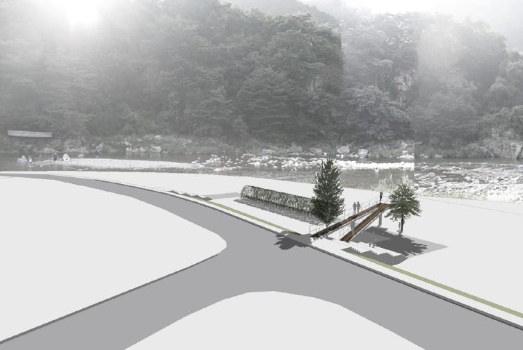풍경은 지키면서, 마을 사람들의 의견도 수용할 수 있는 방법을 생각했습니다. 저희는 높이 서서 풍경을 멀리 바라보는 대신, 풍경에 가까이 다가가는 다리를 제안했습니다. 풍경 속으로 들어가는 브릿지죠.