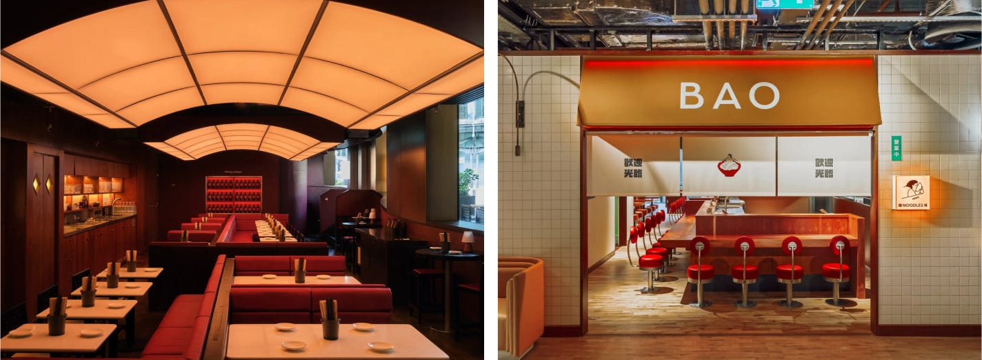 또, ‘바오 이터리(BAO Eatery)’는 런던 도심과 어울리는 확장된 버전이에요. 다른 지점보다 넓고 모던한 공간에서, 번은 물론 라이스볼, 버블티까지 다양한 메뉴를 즐길 수 있죠. ‘누들 숍(Noodle Shop)’은 대만의 면 전문점 분위기를 그대로 가져왔고요. 면 요리를 중심으로 선보이고, 카운더 좌석을 중심으로 빠르게 먹고 나가는 분위기를 담아냈어요.