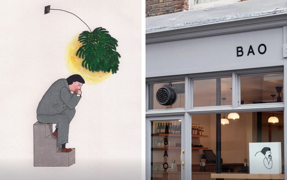 이 로고, 조금 웃기지 않나요? 한 남자가 입을 벌려 번을 힘껏 베어 먹고 있어요. 설명에 따르면, ‘번을 먹으며 완벽한 순간을 즐기는 외로운 남자’라고 해요. 그렇다면 이 외로운 남자는 누구일까요? 그는 런던의 F&B 브랜드 ‘바오(BAO)’를 상징하는 캐릭터예요.