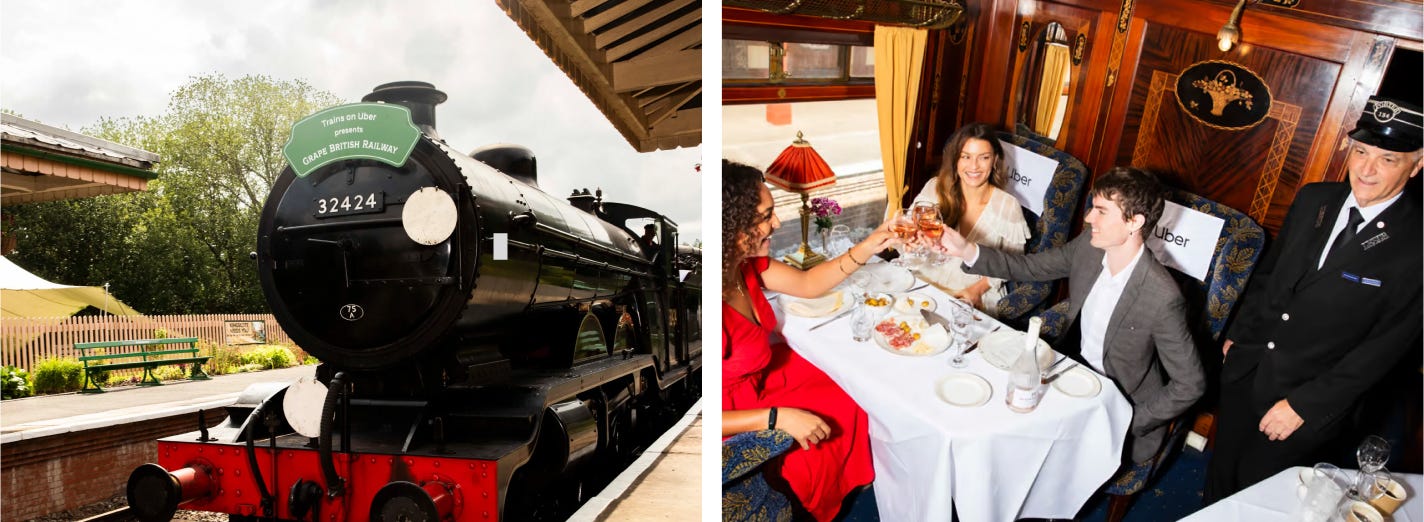 우버는 이 흐름을 놓치지 않았어요. 와인 관광의 수요와 철도 여행의 낭만을 담은 특별한 프로그램을 기획했죠. 그렇게 탄생했어요. ‘그레이프 브리티시 철도 체험(Grape British Railway Experience)’. 단 두 번, 8월에 진행된 이 여정은 빈티지 풀먼 열차에서 3코스 와인 페어링 런치로 시작해 와이너리 투어와 시음 그리고 마지막에는 라이브 음악 공연으로 이어졌어요.