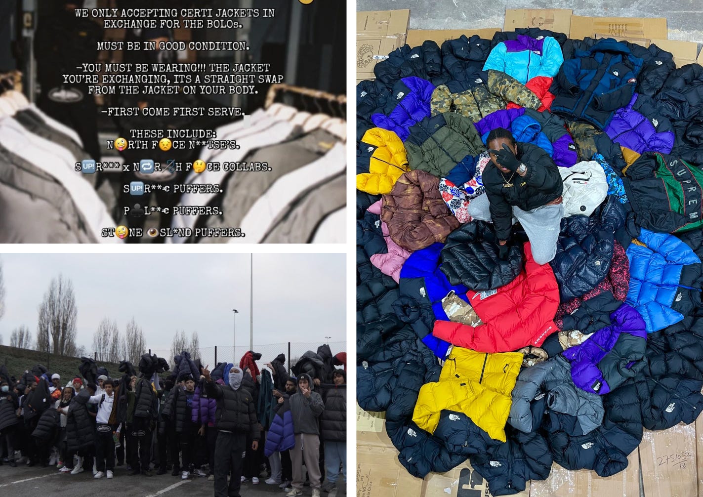 예를 들어 2022년에 Bolo 패딩 자켓을 출시할 때였어요. “Da Great Bolo Exchange”라는 이벤트를 열었는데요. 런던의 한 주차장에서 진행된 이벤트는 이전과 달리 오픈 직전 시간과 장소를 공지했어요. 하지만 옷을 사는 것이 아니라 이미 갖고 있는 패딩을 입고 오면 교환을 해준다는 조건이었죠.