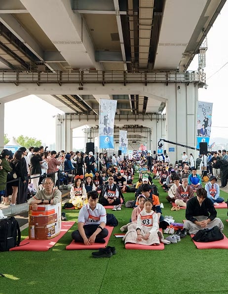 만약 중간에 멍 때리기에 실패하면 어떻게 되나고요? 곧장 ‘퇴장 카드’를 받고 전통 무관 복장을 한 진행자에 의해 경기장 밖으로 끌려 나가요. 대회의 최종 우승자는 현장에서의 시민들이 투표로 제출하는 ‘예술점수’와 심박수 측정을 기반으로 한 ‘기술점수’를 종합해서 선정되죠. 결국 ‘잘 쉬는 법’을 아는 자가 우승하는 대회예요. 매년 조기 마감될 만큼 인기가 높고, 일본 등 해외에서도 열릴 정도로 화제예요.