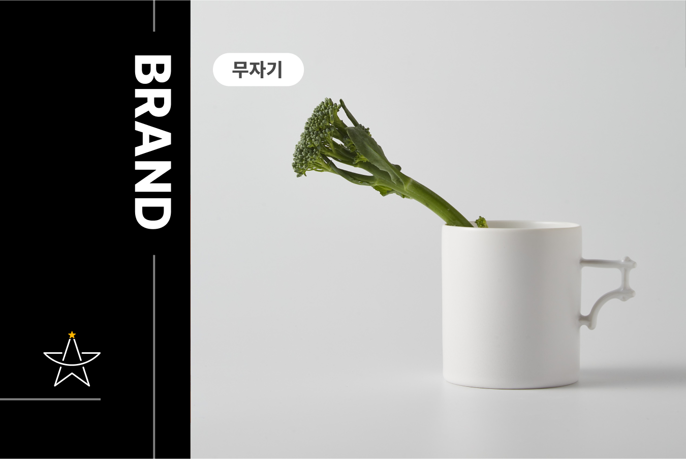 무자기의 인기 비결은 브랜드 이름에 있어요. 무자기는 일부러 꾸미거나 뜻을 더하지 않는다는 의미의 ‘무작위’에서 따온 말이에요. 그래서 인위적이지 않은 순백의 아름다움으로 시선을 사로잡죠. 그뿐 아니라 제품명에도 ‘찬기’, ‘종기’ 등의 쓰임새를 포함하지 않아요. 정해진 용도에 따라서 쓰는 게 아니라 취향껏 쓰라는 의도에서요.