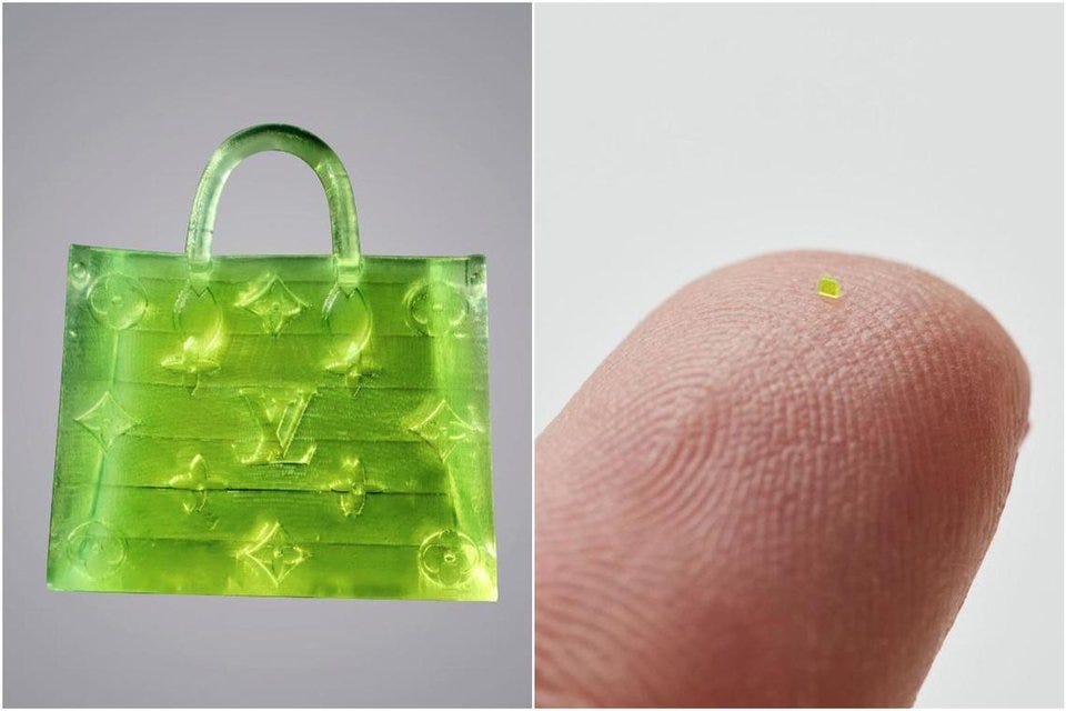 미스치프의 대표적인 프로젝트 몇 가지를 살펴 볼까요? 2023년에는 너비가 0.76mm가 채 되지 않는 루이비통 온더고(OnTheGo) 토트백을 만들었어요. 너무 작아서 가방의 기능은 커녕, 육안으로 식별하기도 힘들 정도의 크기예요. 기능보다 로고에 집착하는 행태를 풍자했죠. 미스치프가 만든 이 초소형 온더고 토트백은 경매에서 63,000달러(약 8,800만 원)에 낙찰되었어요. 300~400만원 대에 판매되는 루이비통 온더고 토트백보다도 20배 이상 비싼 가격에 판매된 거예요.