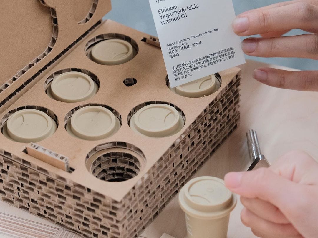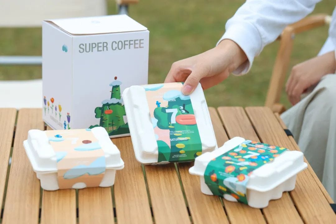가게 구석에 있는 커다란 철제 선반엔 8이라고 적힌 박스들이 촘촘히 꽂혀 있죠. 8이라는 숫자에서 벌써 감이 오죠. 오프라인 매장에서만 판매하는 8호 한정판 시리즈에요. 재활용 종이로 만든 상자 속에 공정 무역 커피를 담은 용기 7기가 포함되어 있죠. 키트 가격은 무려 149위안. 기존 산뚠반 커피보다 2.5배 가량 비싸지만 산뚠반의 유일한 8호 시리즈라는 점에서 수집 욕구를 자극하고 가치 소비를 이끌죠. 기념품 삼아 8호를 구매하는 팬들을 심심치 않게 발견할 수 있어요.