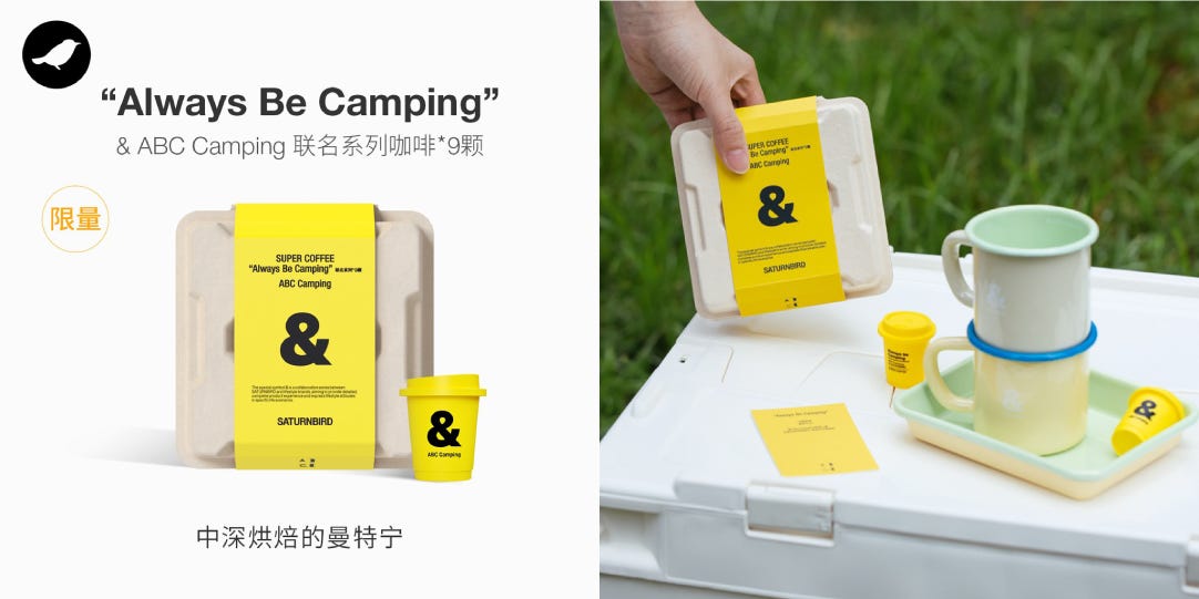 &호는 커피나 음료 브랜드가 아니라 타 영역에 있는 브랜드와 콜라보한 커피 라인이에요. 산뚠반의 프리미엄 커피는 건강에도 좋다는 이미지를 레버리지해, MZ세대들이 열광하는 스포츠, 액티비티, 홈트 관련 브랜드들과 협업한 것이 대표적이죠. 캠핑족에게 각광받고 있는 캠핑 브랜드 ‘ABC 캠핑(ABC CAMPING), 도쿄의 자전거 브랜드 ‘도쿄 바이크(Tokyo Bike)’, 중국에서 가장 유명한 홈트 앱인 ‘킵(Keep)’ 등과 콜라보를 진행했어요. 해당 브랜드의 성향에 맞게 블랜딩한 커피를 해당 브랜드 컬러와 슬로건이 적힌 용기 속에 담고, 캠핑 머그잔, 스포츠 양말, 홈트 마시지 볼 등과 함께 세트 상품으로 판매하는 식이에요. 이후 MZ 세대들이 열광하는 힙한 패션 브랜드로도 협업 범위를 확장하면서 산뚠반의 고객 접점을 강화하면서도 넓히죠.