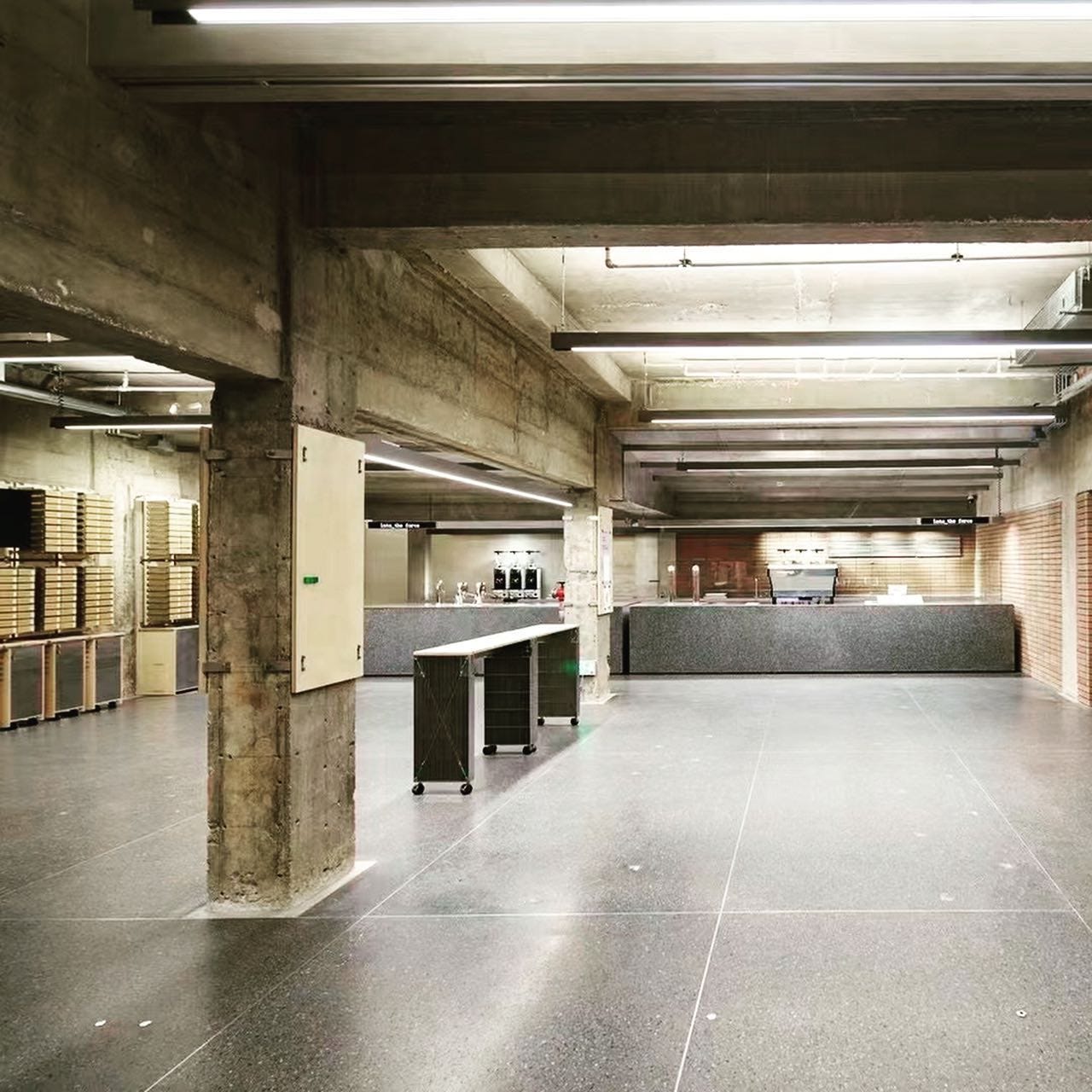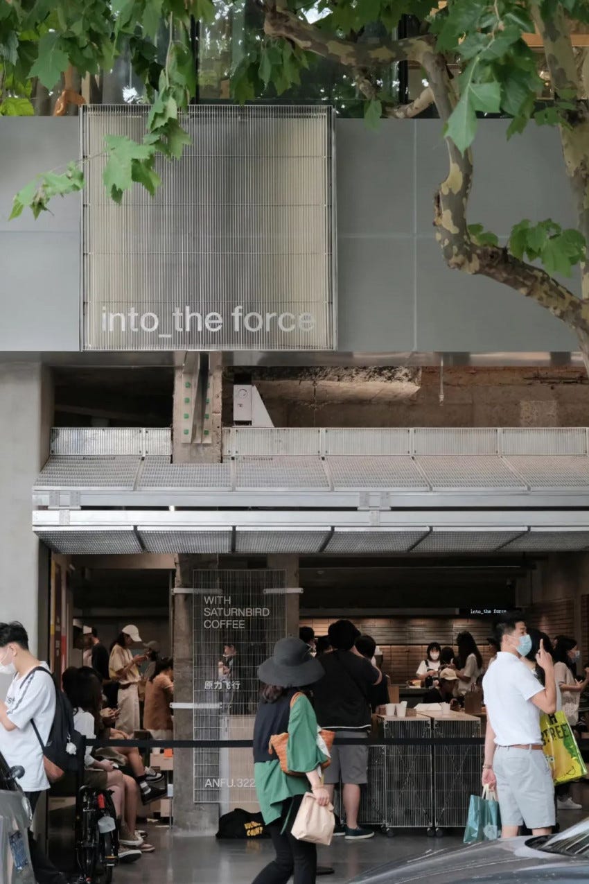 2021년 9월, 산뚠반은 상하이에 핫플레이스가 밀집한 골목에 카페를 오픈해요. 가게명은 ‘into_the force (原力飞行)’. 이름만 들어선 좀처럼 산뚠반을 연상하기 어렵죠. 공간 구성 역시도 심플하고도 직관적인 산뚠반 제품들과 차이가 있어요. 이곳은 외부와 내부를 구분하는 문이 따로 없으며, 상점이 모여있는 골목에서 누구나 들어올 수 있도록 공간이 개방되어 있죠. 낡은 콘크리트 벽과 천장 위를 가로지르는 철골 구조물이 인더스트리얼 풍으로 드러난 내부 공간은 동네 분위기와 이질감 없이 연결되요.