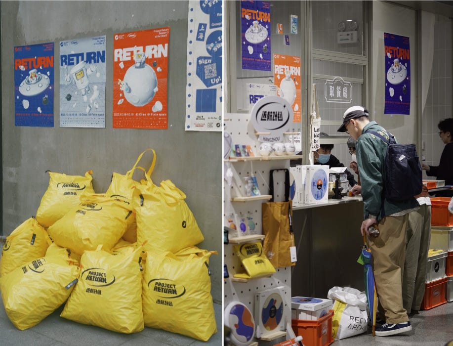 이 이색적인 행사를 주최한 건 중국에서 프리미엄 인스턴트 커피 시장의 새 지평을 연 ‘산뚠반(三顿半)’. 프로젝트 이름은 ‘프로젝트 리턴(Project Return)’이에요. 상자, 자루, 가방 등에 사람들이 잔뜩 들고 온 것은 산뚠반 제품의 빈 플라스틱 용기였죠. 산뚠반의 빈 플라스틱 용기를 지정된 장소에 들고 오면 그 개수에 맞게 재활용 플라스틱으로 만든 굿즈로 교환해주는 캠페인이에요. 일회성 이벤트가 아니라 2019년부터 연간 2회씩 진행하며, 시즌 5까지 마쳤어요. 회차를 거듭할수록 파타고니아, 프라이탁 등 지속가능성과 힙함을 고루 갖춘 브랜드와 협업하면서 더 많은 참여를 끌어냈죠. 현재까지 누적으로 회수된 용기는 약 492만개, 누적 참여인원도 8만여명에 이르러요.