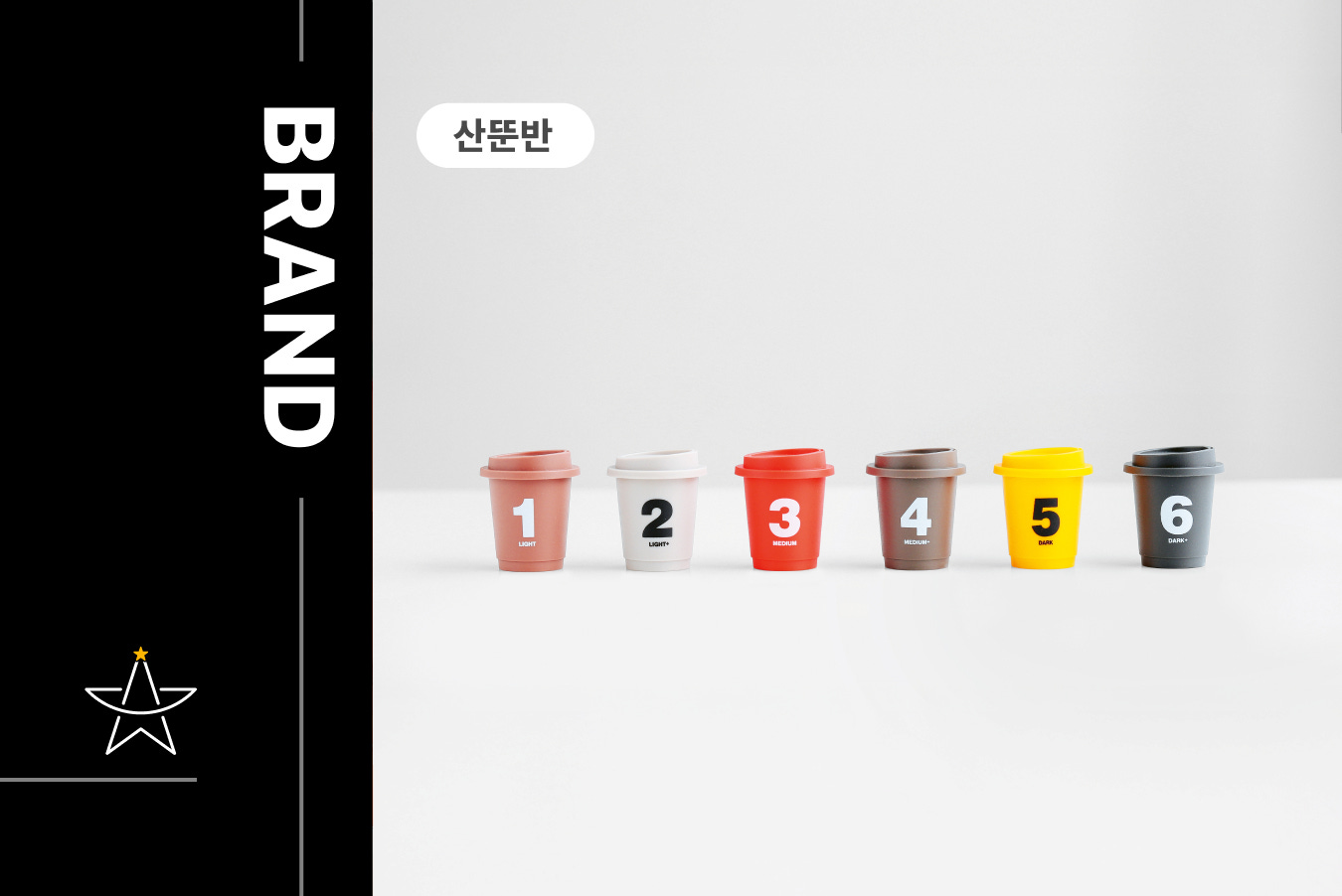 제품의 방향까지 정했지만 문제는 브랜딩이었죠. 기존 인스턴트 커피처럼 스틱형 포장으로 나갈 경우 프리미엄 이미지가 상쇄될 뿐만 아니라 소비자들에게 어필하기엔 매력도가 떨어질 것으로 예상했죠. 그래서 그는 획기적인 디자인 패키지로 눈길을 끌기로 한 거에요. 그렇게 ‘세상에서 가장 작은 스페셜티 커피’란 컨셉으로 ‘프리미엄 인스턴트 콜드브루 커피’가 탄생했죠. 1~6까지의 숫자가 큼지막하게 적힌 산뚠반 시그니처 커피컵 용기에 담겨서요.
