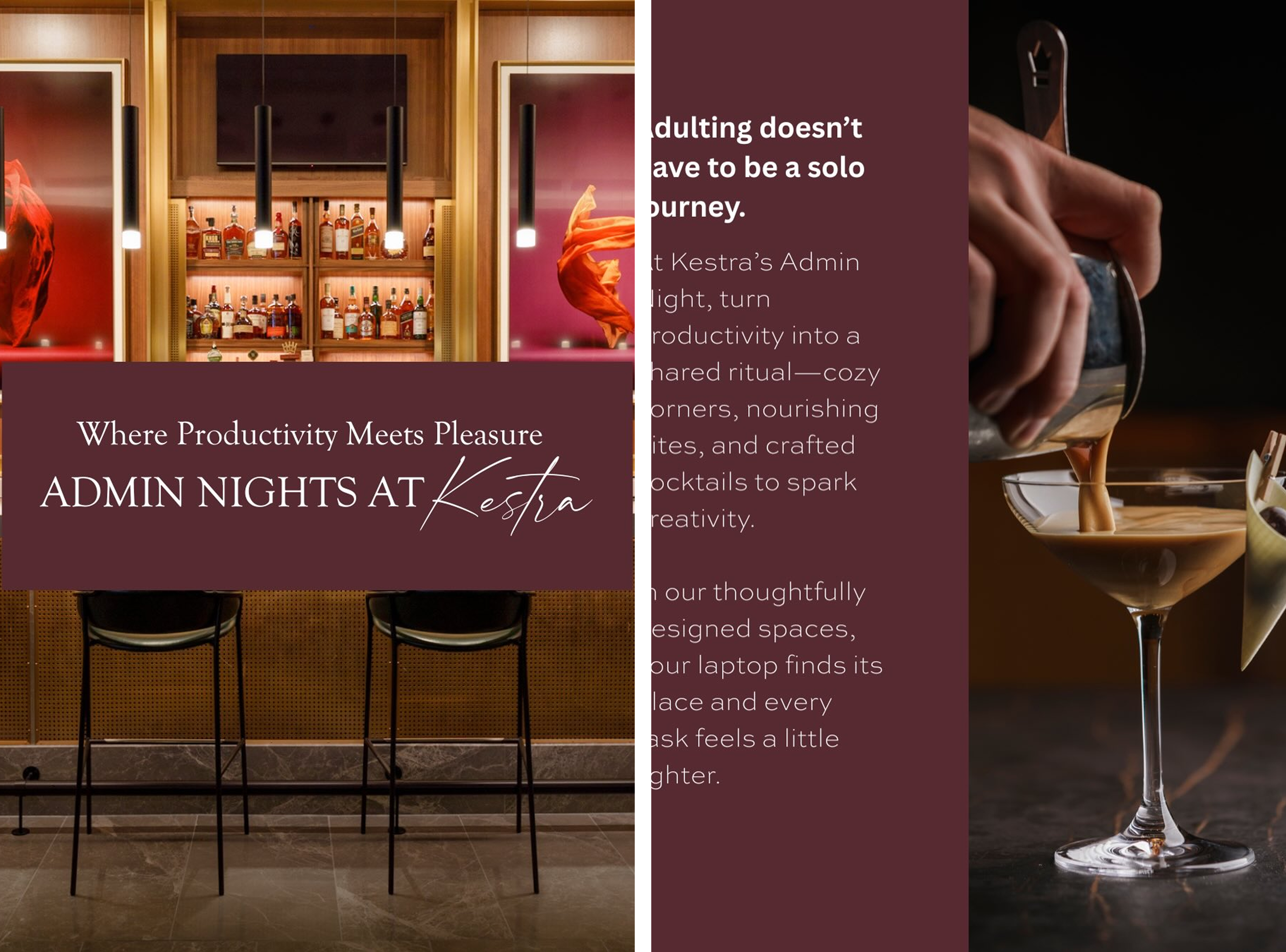 카페나 바 못지 않게 호텔도 발 빠르게 대응하고 있어요. 소음은 피하면서도 집보다 높은 집중력을 원하는 이들이 아예 호텔 방을 잡아 어드민 나이트를 즐기기 시작했거든요. 이에 맞춰 몇몇 호텔들은 내부 인테리어를 아예 어드민 나이트에 최적화된 형태로 바꾸고 있어요. 투숙객들이 함께 작업할 수 있도록 커다란 공용 테이블을 배치하는 식으로 말이에요.