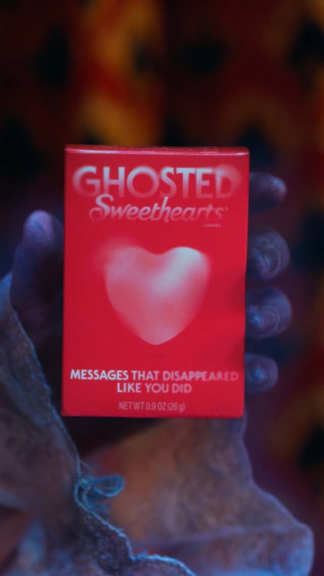 스윗하츠의 이번 할로윈 에디션은 MZ세대를 대상으로 한 설문조사 결과에서 시작되었어요. 스윗하츠의 조사에 따르면, MZ세대의 50%가 연애에 있어서 ‘고스팅(Ghosting)’, 즉 갑자기 연락을 끊는 잠수 이별을 최악의 요소로 여긴다고 해요. 뉴욕에 본사를 둔 심리 상담 센터인 Thriving Center of Psychology도 MZ세대의 무려 84%가 고스팅을 당한 적이 있다고 발표한 바 있죠. 미국의 MZ세대에게는 고스팅이 진짜 유령인 ‘고스트(Ghost)’만큼이나 피하고 싶은 존재인 셈이에요.