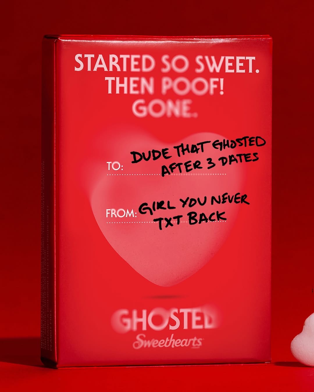 한 때 좋아했지만, 잠수 이별로 상처를 준 상대방에게 ‘너는 최악이었다’는 메시지를 유쾌한 방식으로 전하는 거예요. 상대방의 잘못을 짚어주며 고스팅으로 상처 받은 마음을 훌훌 털어버릴 수도 있을 테죠. 이번 고스티드 스윗하츠는 소비자의 감정에 시즈널한 유머를 더해 미국 MZ세대에게 큰 공감을 불러 일으키고 있어요.