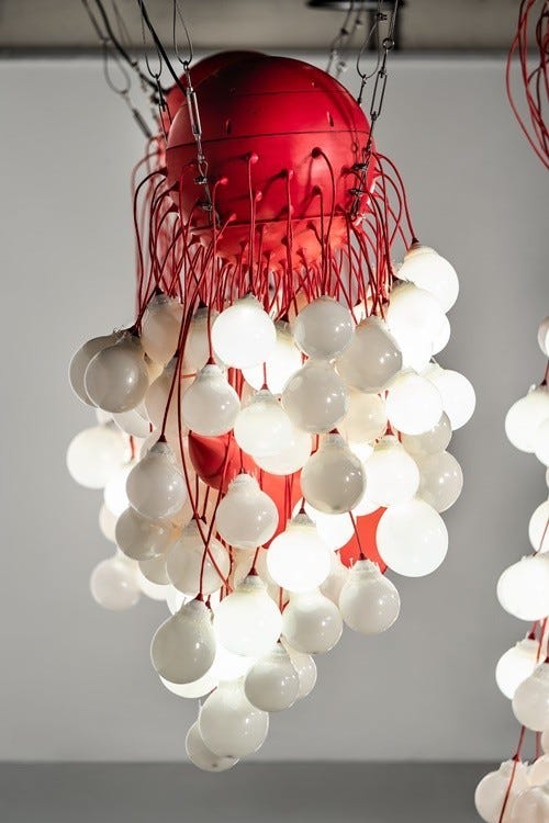 구체적으로 어떤 작품들이 있을까요? 대표적으로 양민하 작가의 전구와 전선으로 이루어진 미디어 설치 작품 ‘닫힌 생명활동 2409’가 기술의 변화 섹션에 설치돼요. 이 작품은 기술의 변화로 인한 인간 본질의 재인식과 인간 중심적 사고방식에서 벗어난 비인간과의 관계성을 재조명하죠.