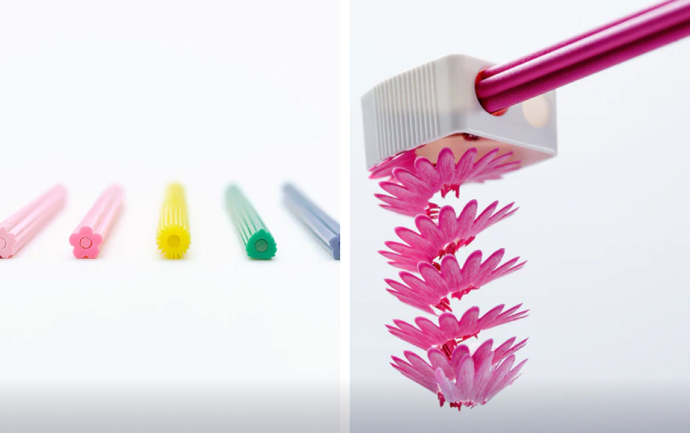 색연필 모양이 꽃잎 모양이에요. 봄의 벚꽃, 초여름의 민들레, 한여름의 도라지꽃, 겨울의 홍매화 등 일본에서 전통적으로 사랑받은 꽃들을 형상화했어요. 일본의 계절을 담아낸 ‘하나이로 엔피츠’죠. 디자인이 유려하지만 이 색연필의 진정한 가치는 색연필로 그릴 때보다 색연필을 ‘깎을 때’예요. 연필깎이에 색연필을 넣고 조심스레 돌리면, 사각거리는 소리와 함께 아름다운 꽃잎이 빙글빙글 쏟아져 나오거든요. 덕분에 그림용으로 사용하기보다 힐링용으로 계속 깎고 싶다는 평이 자자하죠.