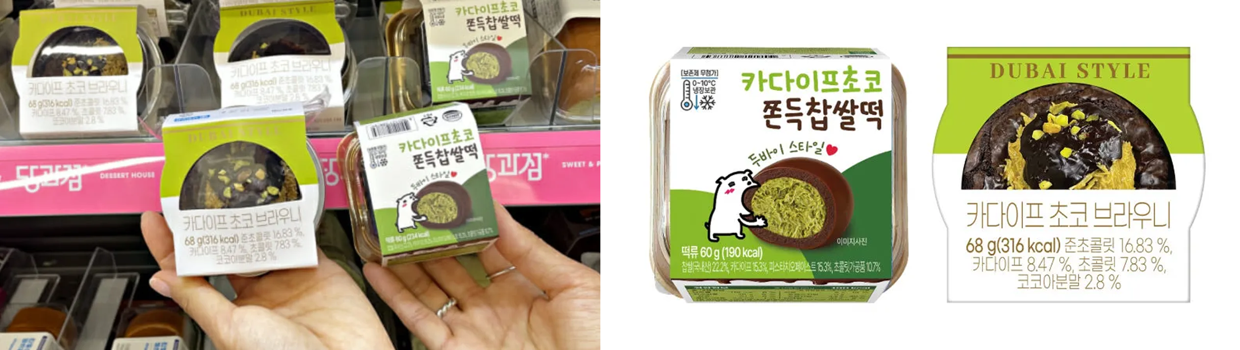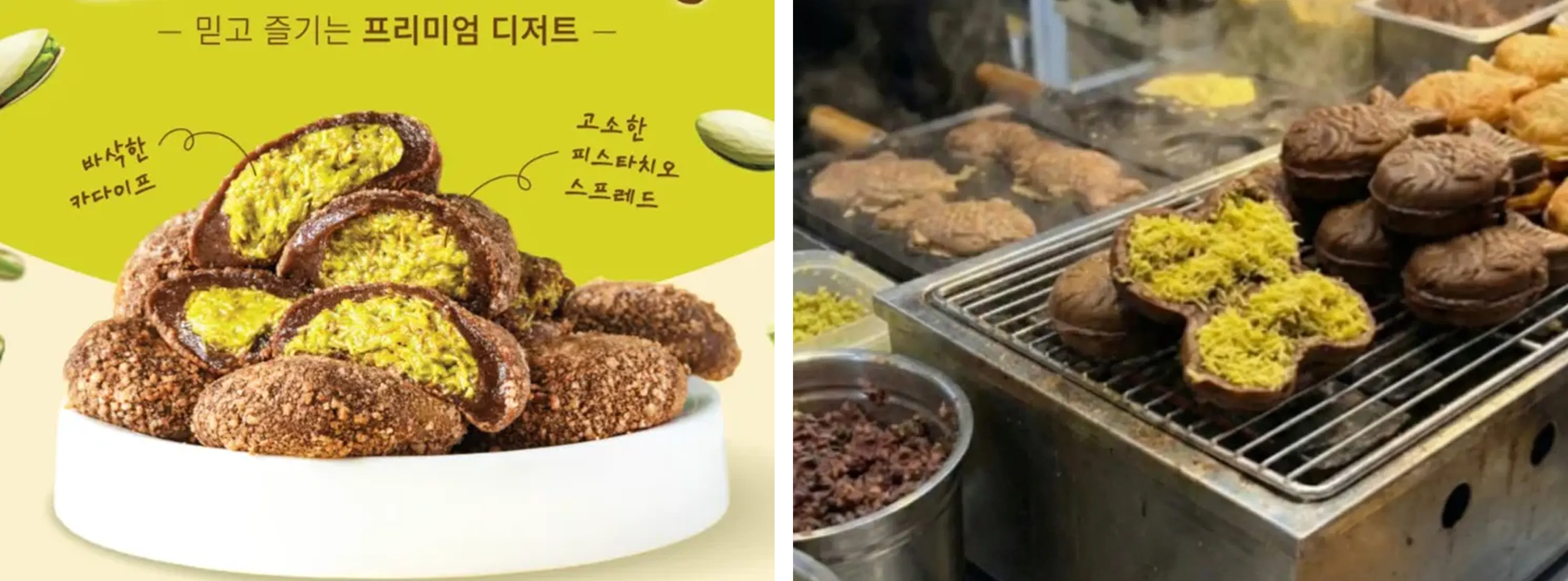 잠시 2024년으로 돌아가 볼게요. 당시 ‘두바이 초콜릿’은 기존 초콜릿 디저트와는 전혀 다른 식감으로 주목받기 시작했어요. 얇게 튀긴 면인 ‘카다이프’의 바삭함에 ‘피스타치오 스프레드’의 진한 고소함이 더해져 색다른 조합을 만들었죠. 갈색 초콜릿과 초록빛 피스타치오가 대비를 이루는 비주얼도 시선을 끌기 충분했고요. 독특한 맛과 비주얼 덕분에 해외 푸드 인플루언서들의 리뷰가 이어졌고, 이 트렌드는 곧 한국으로 퍼졌어요.
