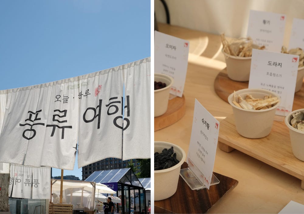 첫 번째 팝업의 주제는 ‘오늘 하루, 풍류 여행’이었어요. 서울 도심 속 루프탑에서 충북과 안동의 전통을 만나는 시간으로, 직접 갓끈을 만들거나, 키 링에 전통 매듭을 엮거나, 약재 향 주머니를 꾸미는 체험이 준비돼 있었죠. 손끝으로 느껴보는 풍류 체험을 두고 SNS에서는 ‘서울에서 이런 걸 할 줄 몰랐다’는 반응이 이어졌어요.