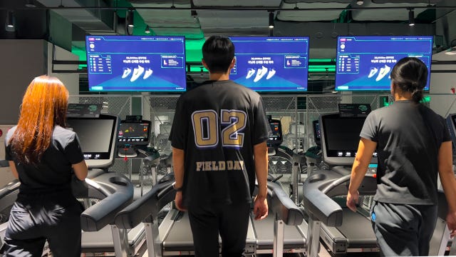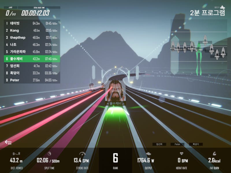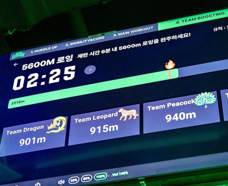 가령, 런닝 머신 위에 달려 있는 모니터에는 지금 내 운동 속도와 순위, 헬스장 내 다른 회원들의 기록 등이 뜹니다. 가속을 하고 있는 회원의 아이콘은 불에 타고 있죠. 회원들이 함께 목표를 달성하면 모니터에서 바나나가 와르르 쏟아져요. 런닝 머신을 달리는 행위로, 실제 게임을 하는 기분이에요.