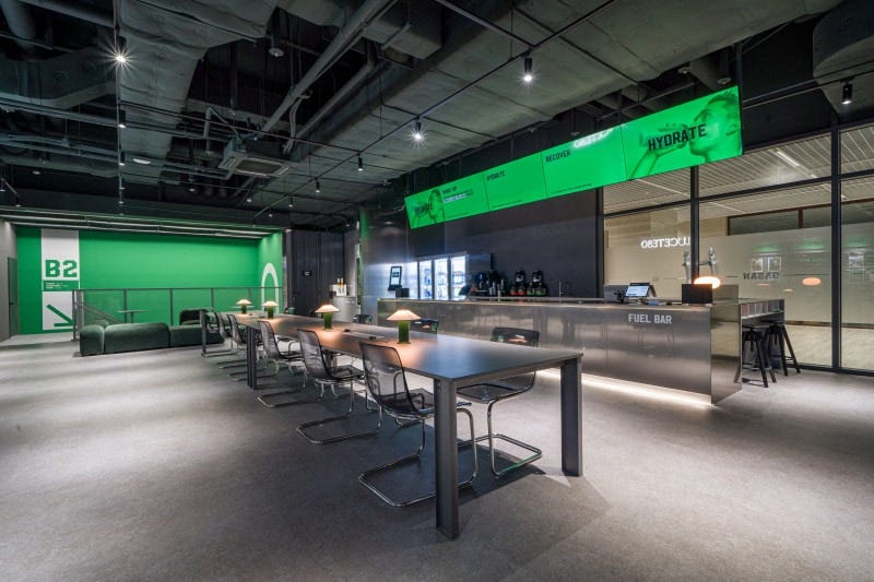 그렇게 모인 ‘플레이트(포인트)’로는 무료 보상을 받을 수 있어요. 스포츠 드링크 게토레이, 에너지 드링크 레드불, 프린트보충제 옵티멈 같은 음료를 헬스장 내 바에서 무료로 받아가죠. 이들은 모두 스폰서드 제품이고요. ‘플레이트 세계관’을 도입한 후, 회원들의 운동량은 무려 60% 증가했어요.