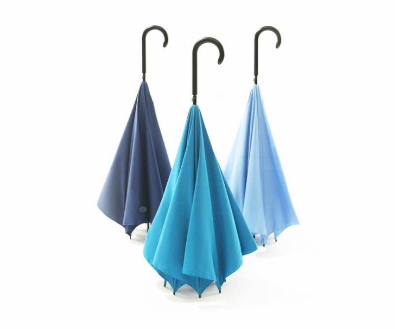 우산 쓰고 차에 탈 때 어떤 문제가 있죠? 우산을 접다보면 빗물이 튀는 걸 감수해야 하죠. 방법이 없을까요? 언 브렐라는 우산을 거꾸로 접히게 디자인했어요. 보통의 우산이 팔 벌린 자세에서 몸통쪽으로 팔을 내리는 식으로 접힌다면, 언 브렐라는 팔 벌린 자세에서 팔을 머리 위로 들어올려 접히면서 젖은 면이 안으로 들어가게 한 거예요. 이렇게 하니 빗물이 튈 리 없죠. 우산을 보관할 때 우산통이나 거치대 없이 스스로 설 수 있는 건 덤. 가격은 9,000엔(약 90,000원).