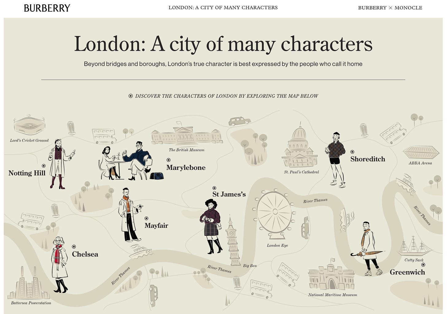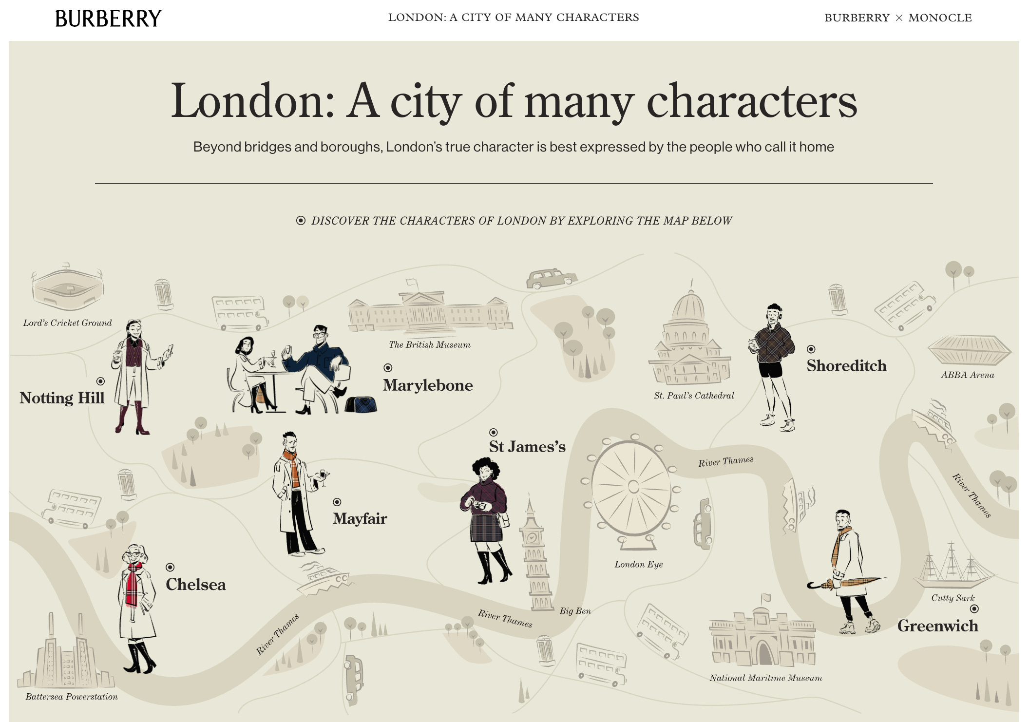 또 하나 주목할 부분은, 서로 다른 카테고리의 두 브랜드가 서로의 콘텐츠가 되었다는 점이에요. 모노클은 도시 문화와 라이프스타일을 읽는 미디어고, 버버리는 영국의 헤리티지를 가진 패션 하우스죠. 두 브랜드가 만나자, 독자와 고객은 자연스럽게 연결됐어요. 모노클의 독자는 버버리의 감도를 새롭게 이해하게 되었고, 버버리를 즐겨 입는 고객들은 모노클의 문화를 경험하게 되었죠.