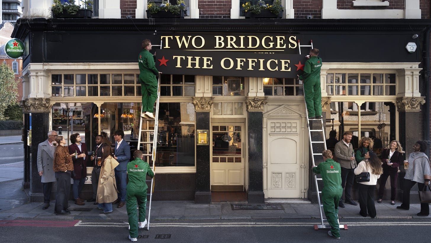 맥주 펍의 도시, 런던에 특이한 변화가 생겼어요. 최근 몇몇 펍들이 짠 듯이 같은 이름으로 간판을 바꾸기 시작했거든요. 새로운 이름은 다름 아닌 ‘사무실(The Office)’. 맥주집이 사무실이라니, 무슨 일일까요? 이 장난스러운 아이디어 뒤에는 글로벌 맥주 브랜드, 하이네켄이 있었어요. 그런데 왜 굳이 사무실이어야 했을까요? 그 질문의 답을 찾기 위해서는 영국의 직장 문화가 요즘에 어떻게 변화하는지를 살펴봐야 해요.