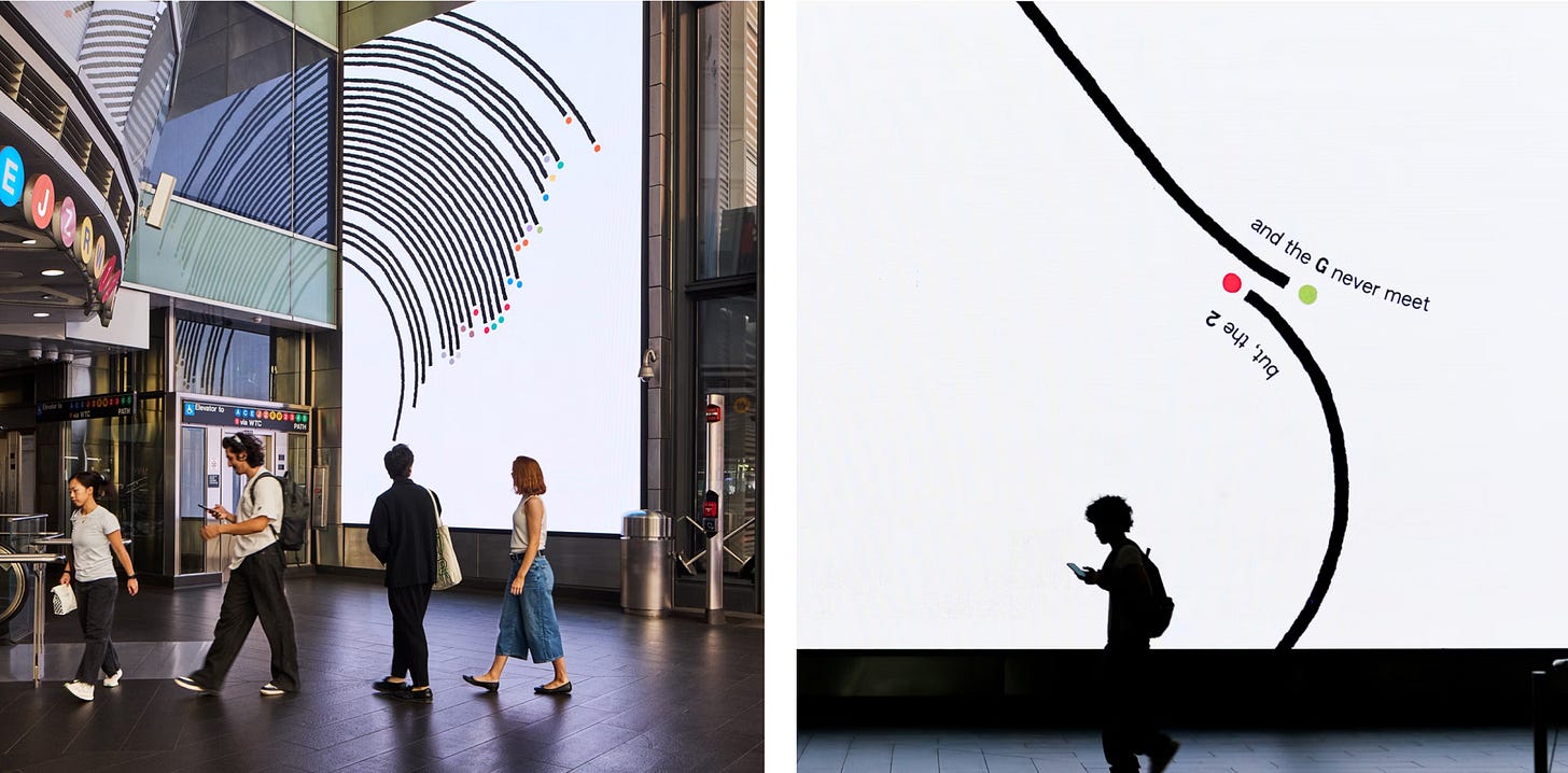 지금 뉴욕 맨해튼의 풀턴 스트리트(Fulton Street) 역에는 매시 정각에 ‘러브 레터’가 펼쳐져요. 지하철역에 러브 레터라니, 무슨 말일까요? 풀턴 스트리트 역 내 무려 50개가 넘는 스크린에 ‘지하철에 보내는 데이터 러브 레터(A Data Love Letter to the Subway)’라는 제목의 영상이 상영 중이거든요.