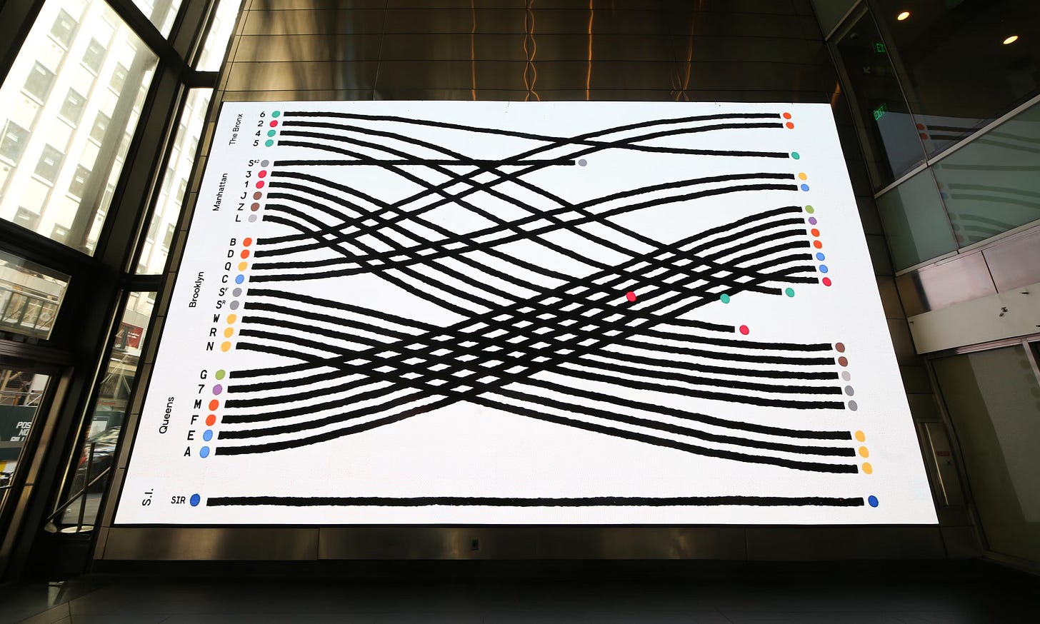 이 프로젝트는 ‘MTA 예술 및 디자인(MTA Arts & Design)’ 설립 40주년을 기념하기 위해 선보인 작품이에요. 뉴욕의 디자인 에이전시, ‘펜타그램(Pentagram)’의 파트너 조르지아 루피(Giorgia Lupi)가 리드했죠. MTA 예술 및 디자인은 뉴욕의 지하철과 같은 대중 교통에 시각 및 공연 예술을 녹여내 대중 교통 이용을 장려하는 기관이에요. 뉴욕 지하철 역사에 흔하게 보이는 아트 피스나 공연들 대부분이 MTA 예술 및 디자인이 주도한 것들이죠.