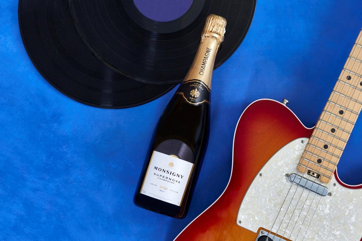 영국 대형 슈퍼마켓 체인 ‘알디(Aldi)’는 이 오아시스 신드롬에 재치 있게 합류했어요. 밴드의 대표곡 ‘샴페인 슈퍼노바(Champagne Supernova)’에서 착안해 ‘슈퍼노바 샴페인’을 한정판으로 선보였는데요. 이 샴페인은 SNS에서 화제가 되며 빠르게 매진되었어요.